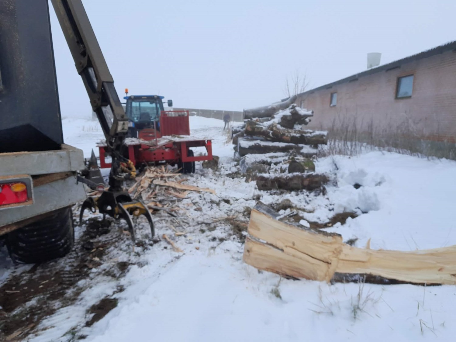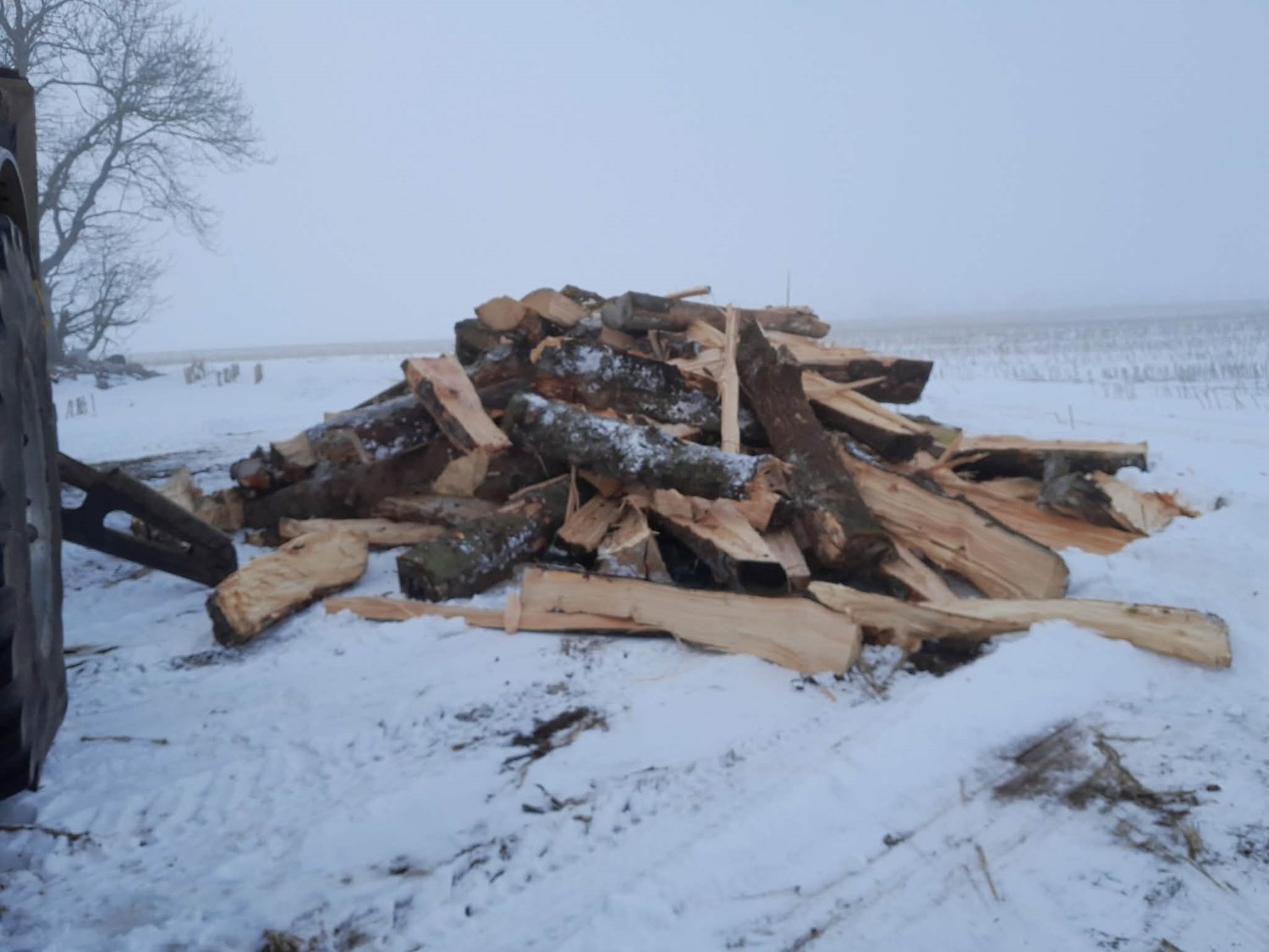 Vi tilbyder trækløvning af store træstammer, som flishuggeren ikke kan håndtere. Træstammerne kan enten kløves på stedet eller transporteres hjem til os selv til trækløvning.